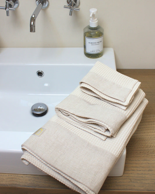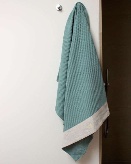 Il cotone a nido d’ape è lavorato appositamente per ottenere un aspetto ad alveare. Questa struttura garantisce proprietà assorbenti, una leggerezza unica e tanta morbidezza. La nostra biancheria per il bagno è rifinita e impreziosita da una bordatura in lino colorato, tono su tono o a contrasto. Il design semplice e i toni scelti si adattano perfettamente a tutte le tipologie di bagno compresi quelli di Hotel, SPA e centri benessere.